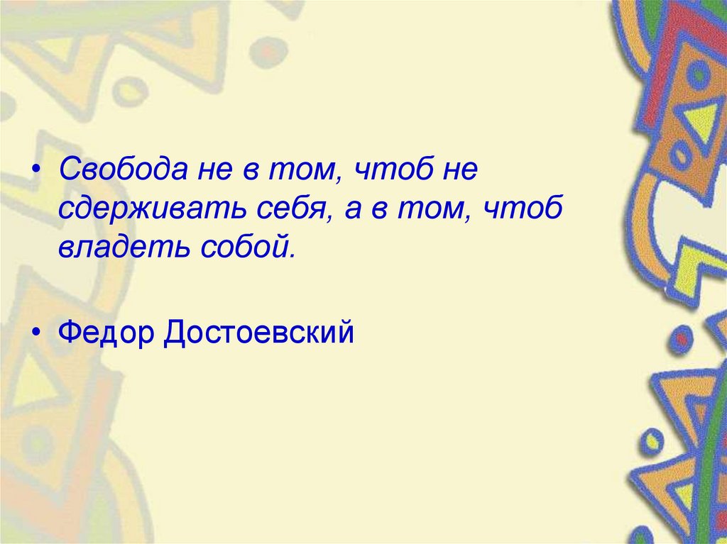 • Свобода не в том, чтоб несдерживать себя, а в том, чтоб