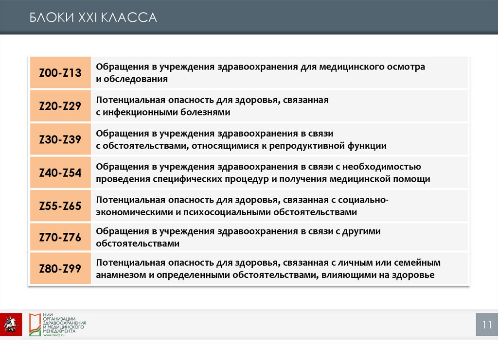 рубрикам XXI класса, с присвоением кода по МКБ-10