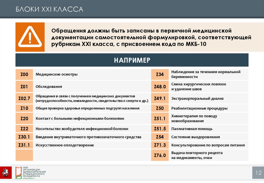 БЛОКИ XXI КЛАССАОбращения должны быть записаны в первичной медицинской