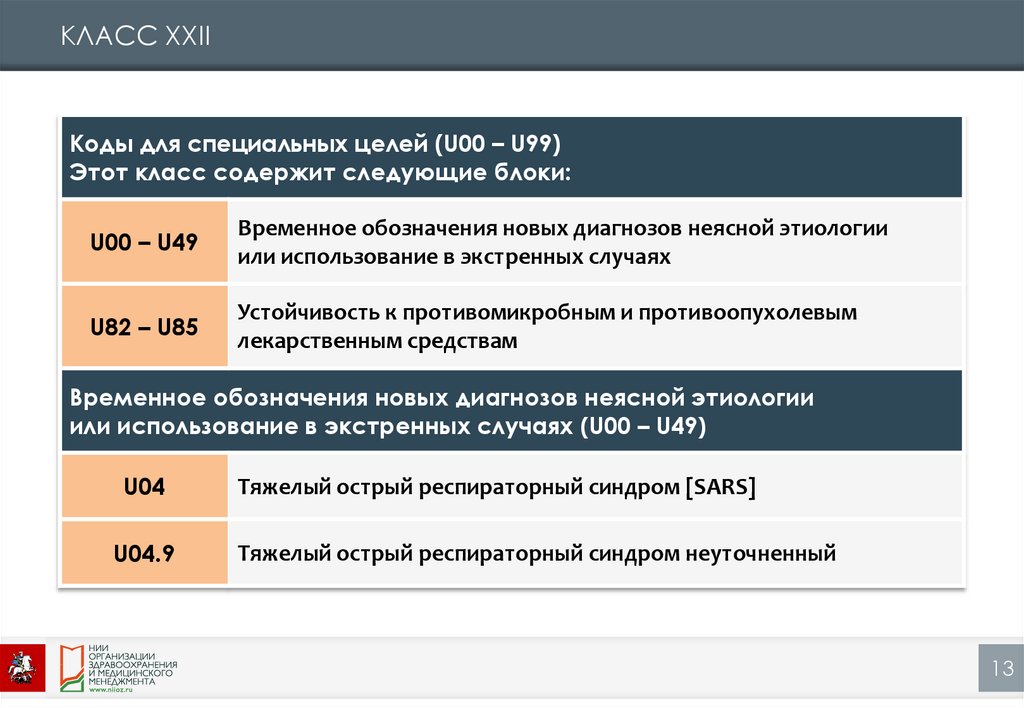 КЛАСС XXIIКоды для специальных целей (U00 – U99)