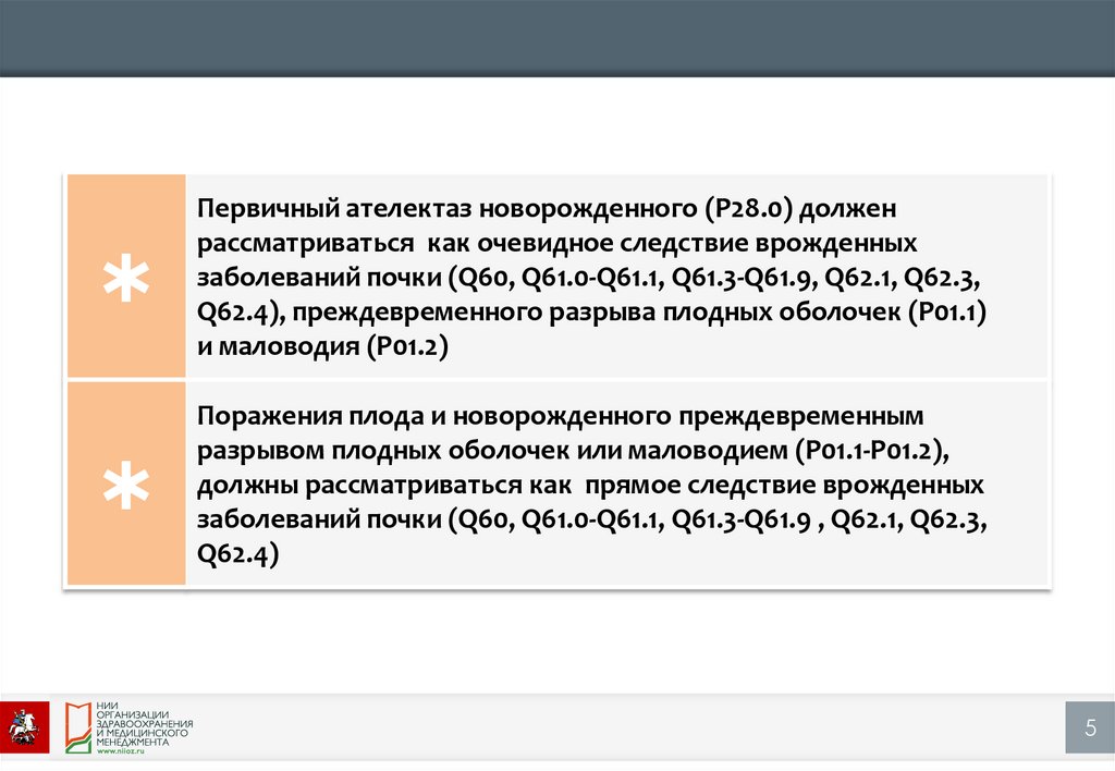 Q62.4), преждевременного разрыва плодных оболочек (P01.1)