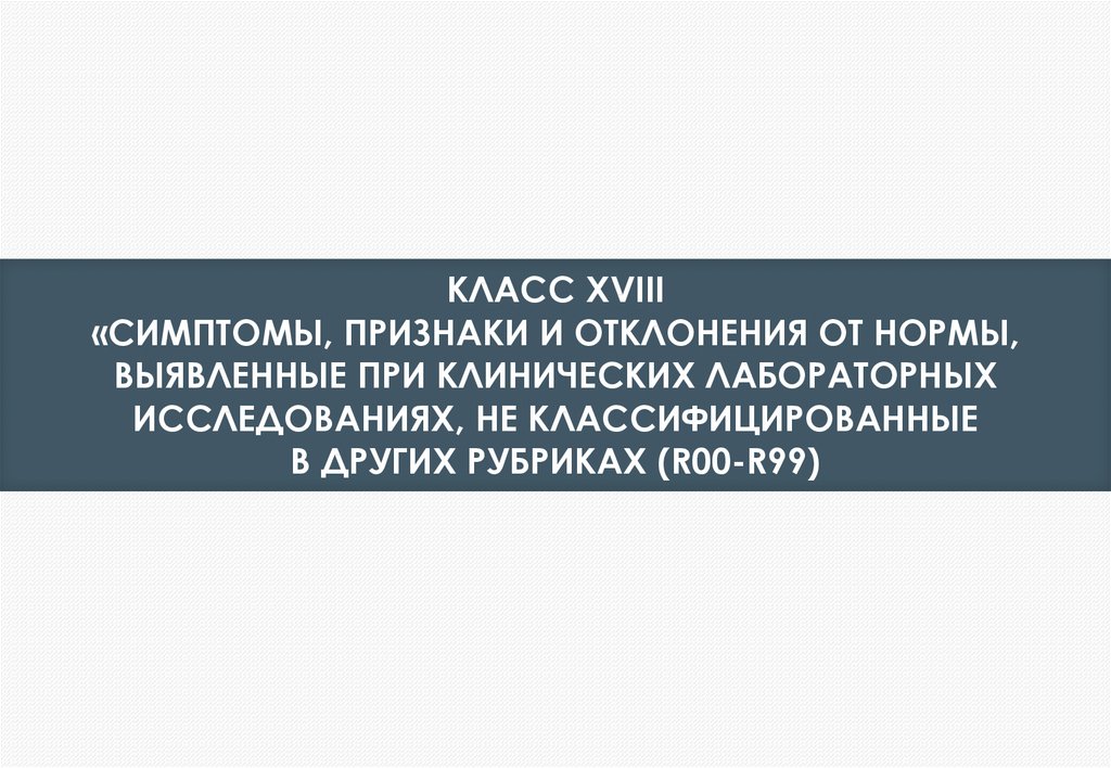 КЛАСС XVIII«СИМПТОМЫ, ПРИЗНАКИ И ОТКЛОНЕНИЯ ОТ НОРМЫ,
