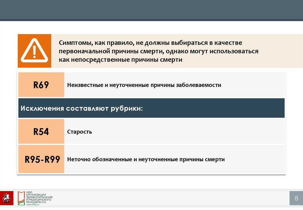Симптомы, как правило, не должны выбираться в качествепервоначальной причины смерти, однако могут использоваться