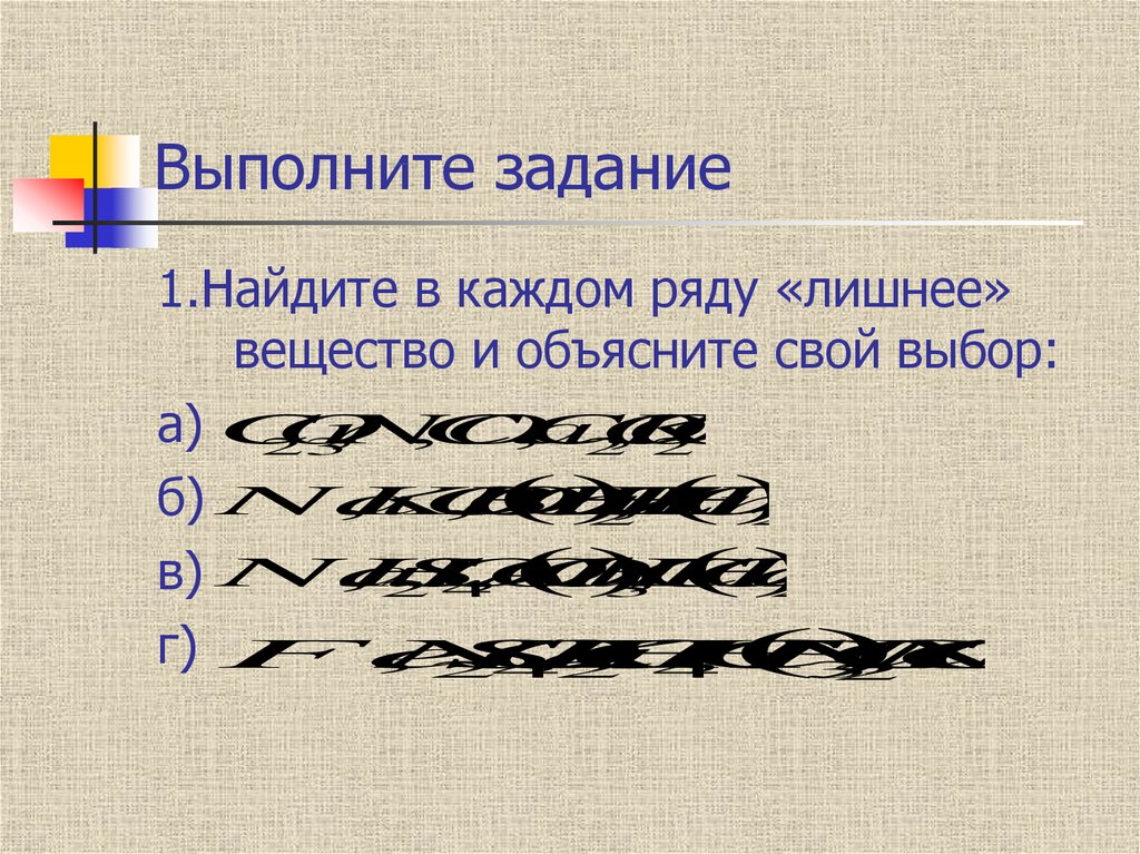 Выполните задание1.Найдите в каждом ряду «лишнее»