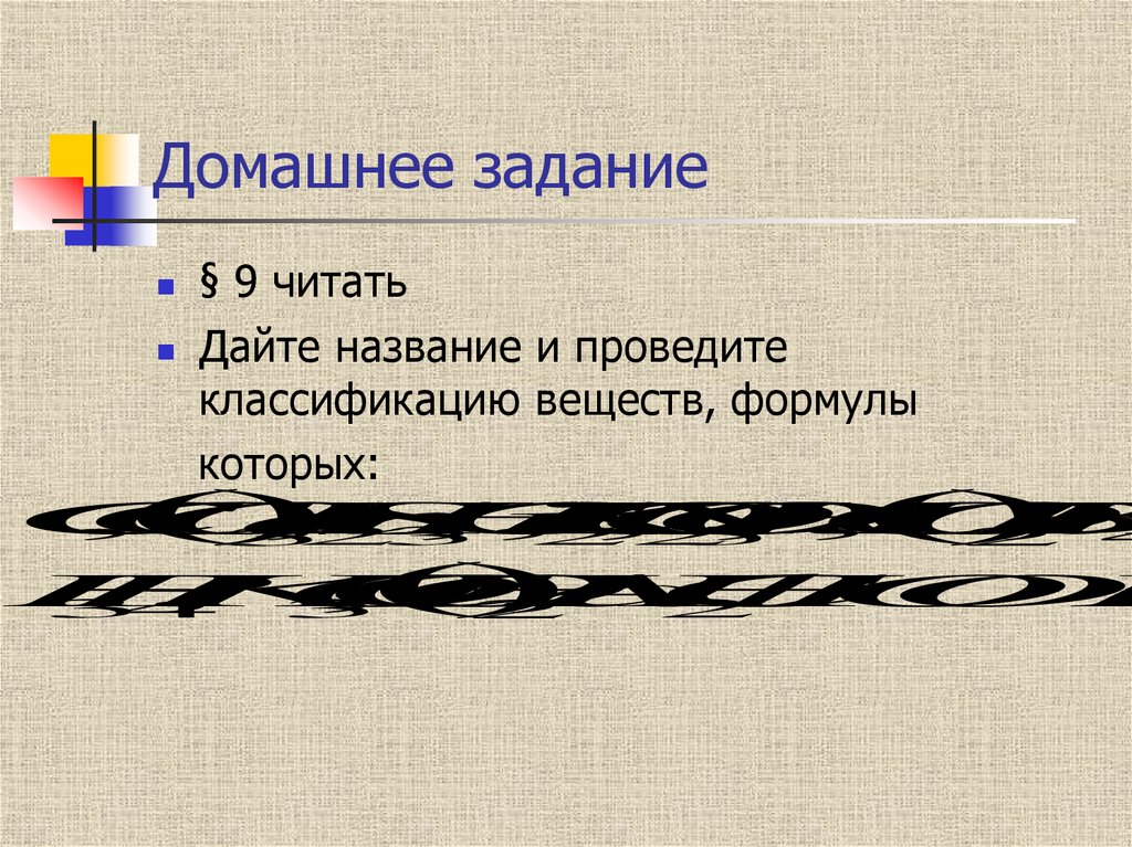 классификацию веществ, формулы