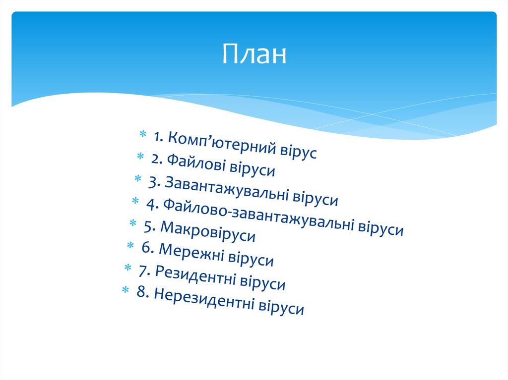 1. Комп’ютерний вiруси та їх классифiкацiя