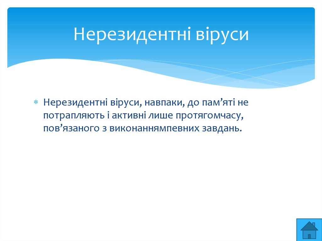 Нерезидентнi вiруси, навпаки, до пам’ятi непотрапляють i активнi лише протягомчасу,