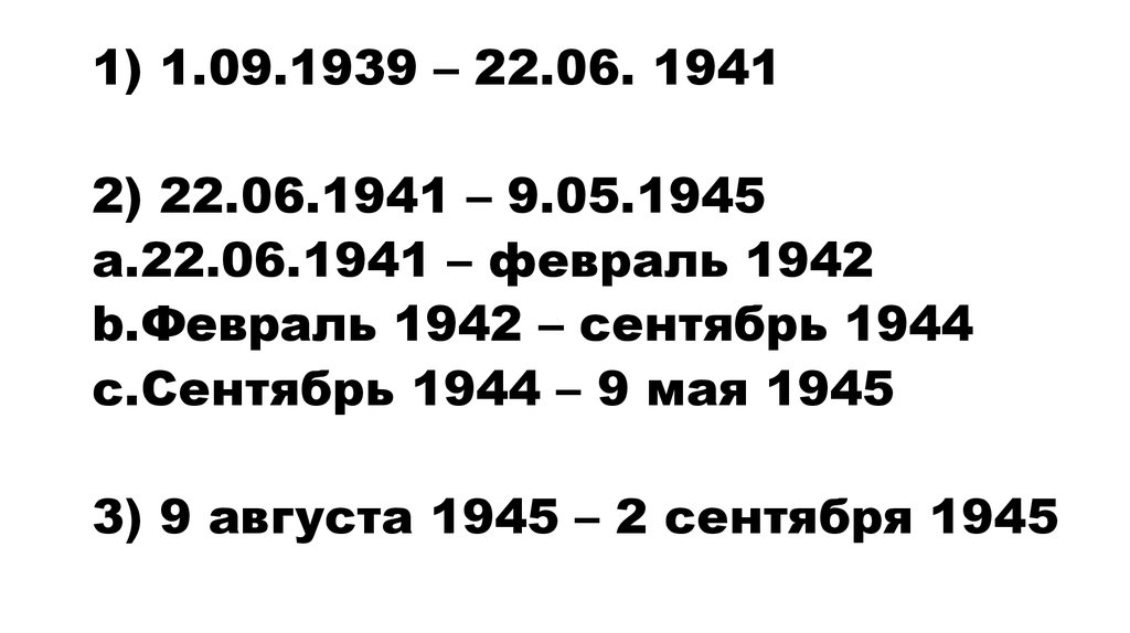 Вторая мировая война 1 сентября 1939 – 2 сентября 1945