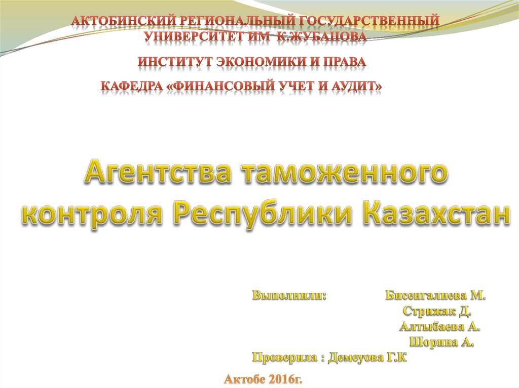 Агентство таможенного контроляРеспублики Казахстан является