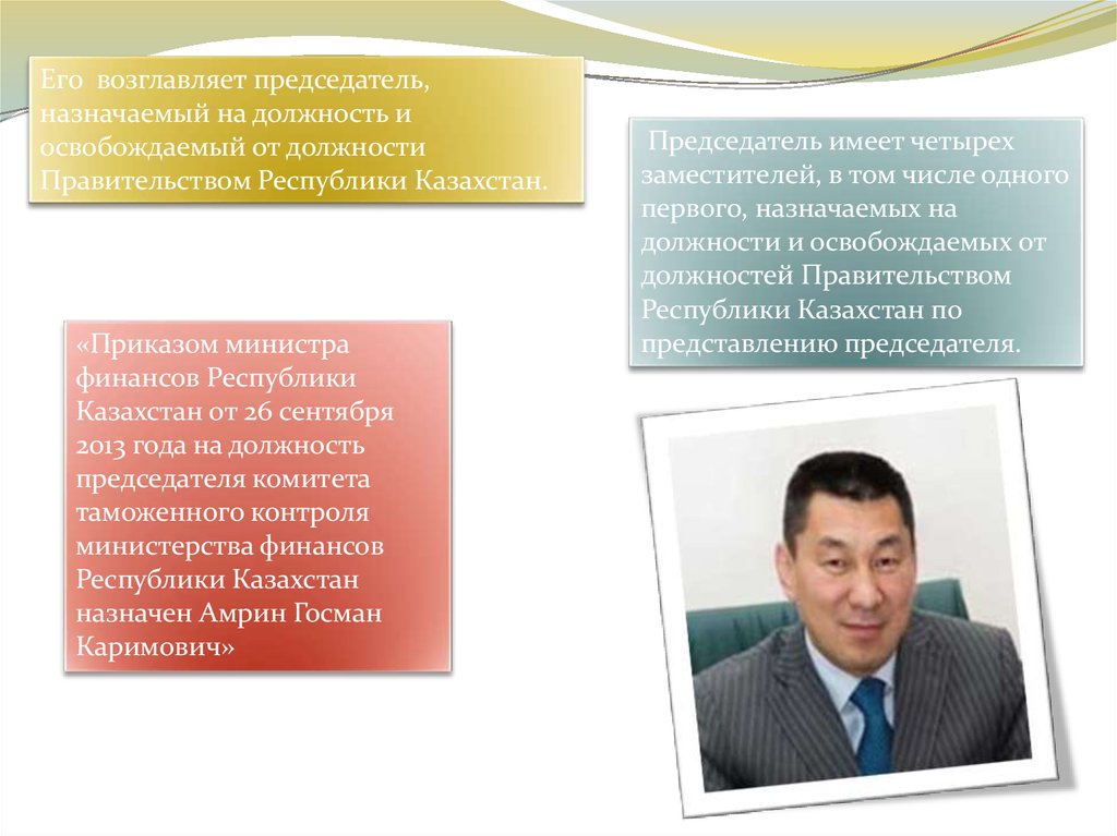 Его возглавляет председатель,назначаемый на должность и