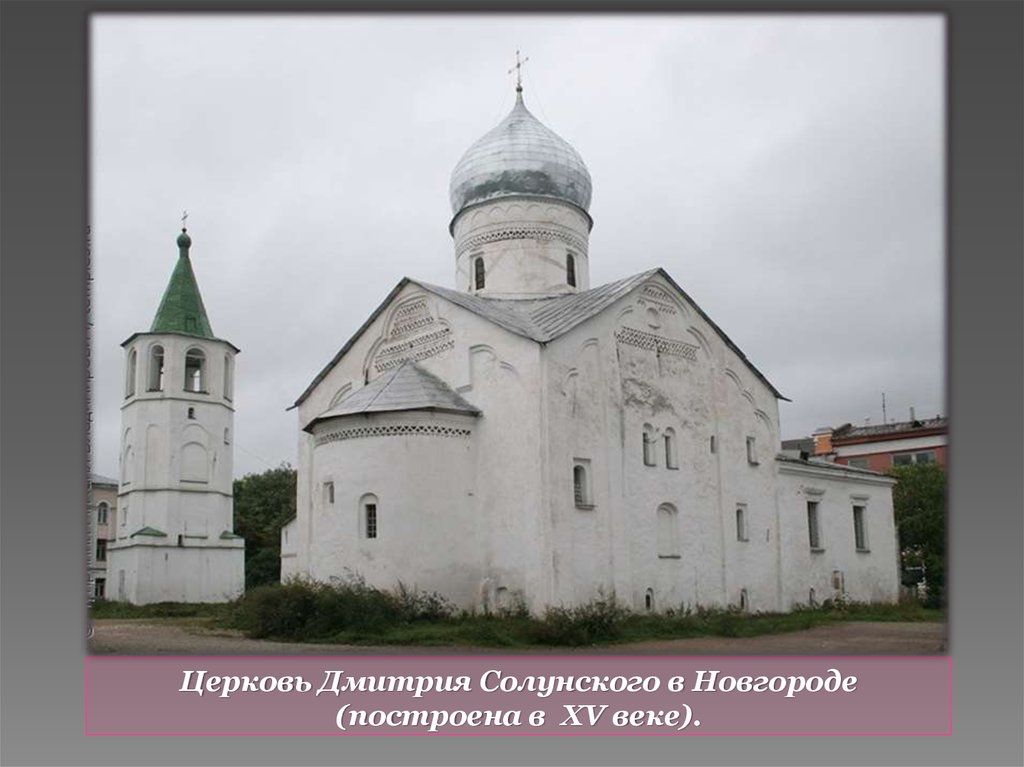 Церковь Дмитрия Солунского в Новгороде(построена в XV веке).