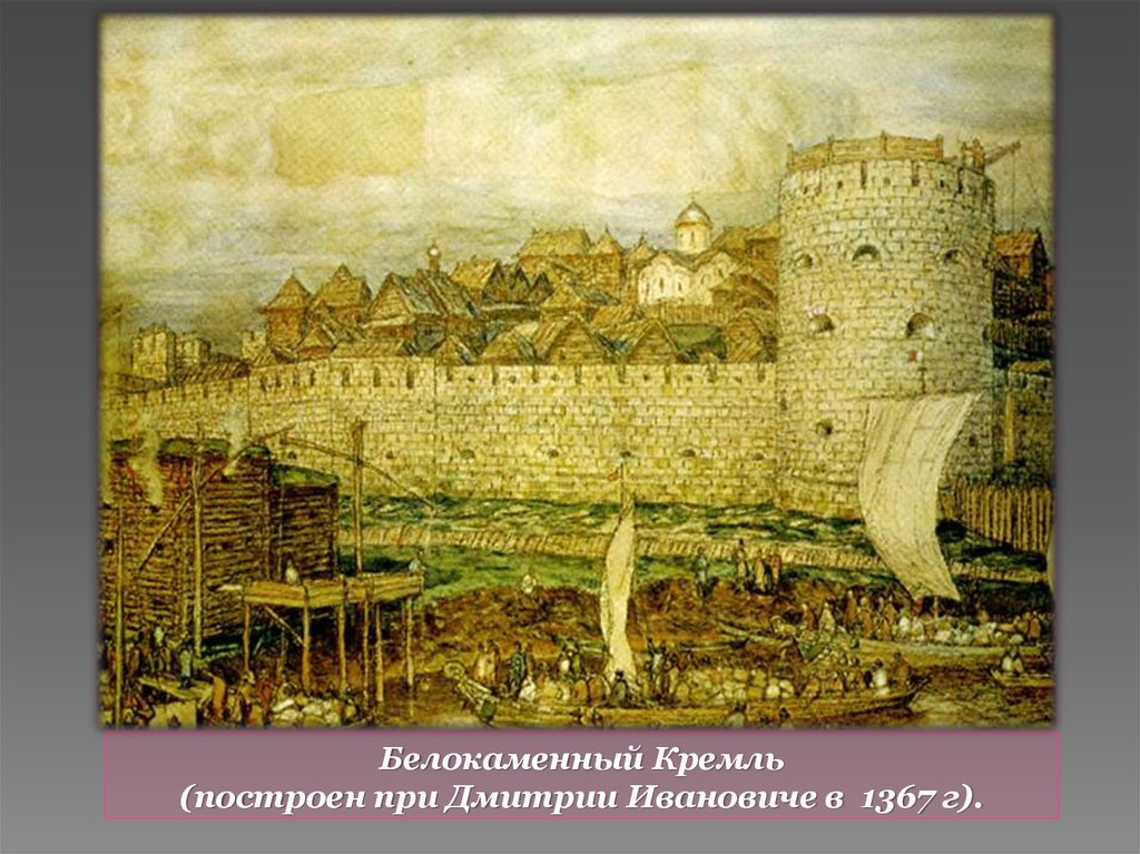 Белокаменный Кремль(построен при Дмитрии Ивановиче в 1367 г).