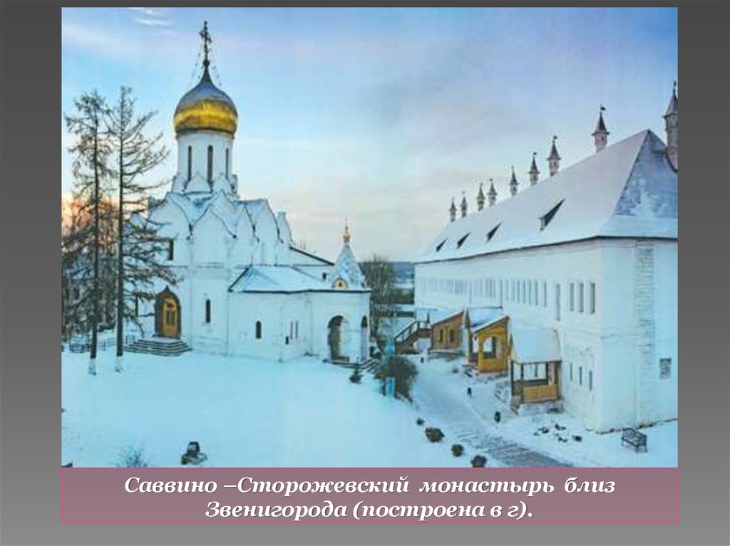 Саввино –Сторожевский монастырь близЗвенигорода (построена в г).