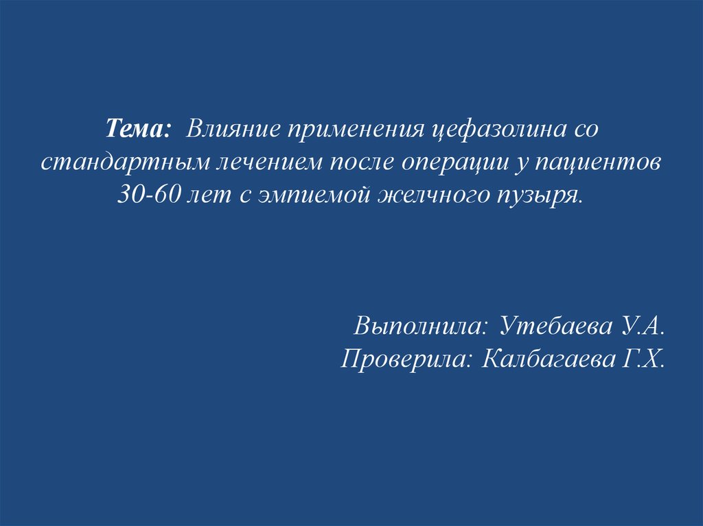 Тема: Влияние применения цефазолина состандартным лечением после операции у пациентов