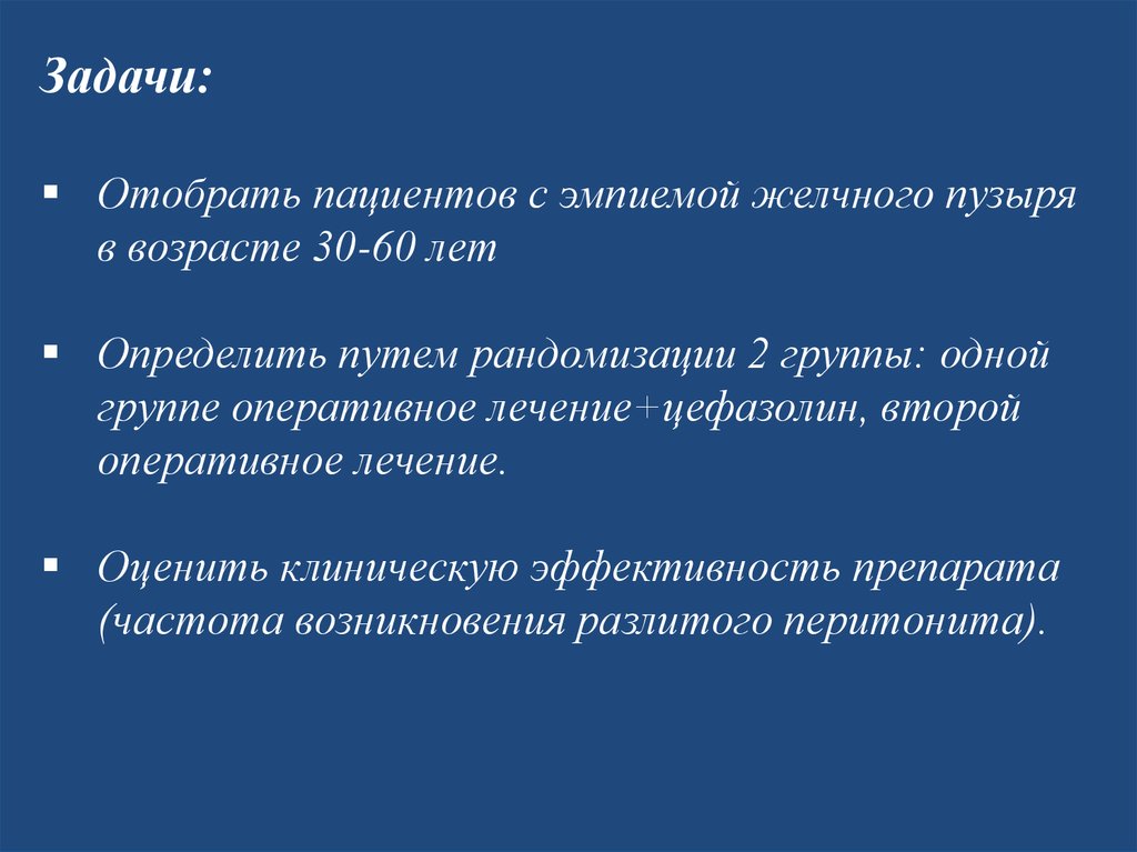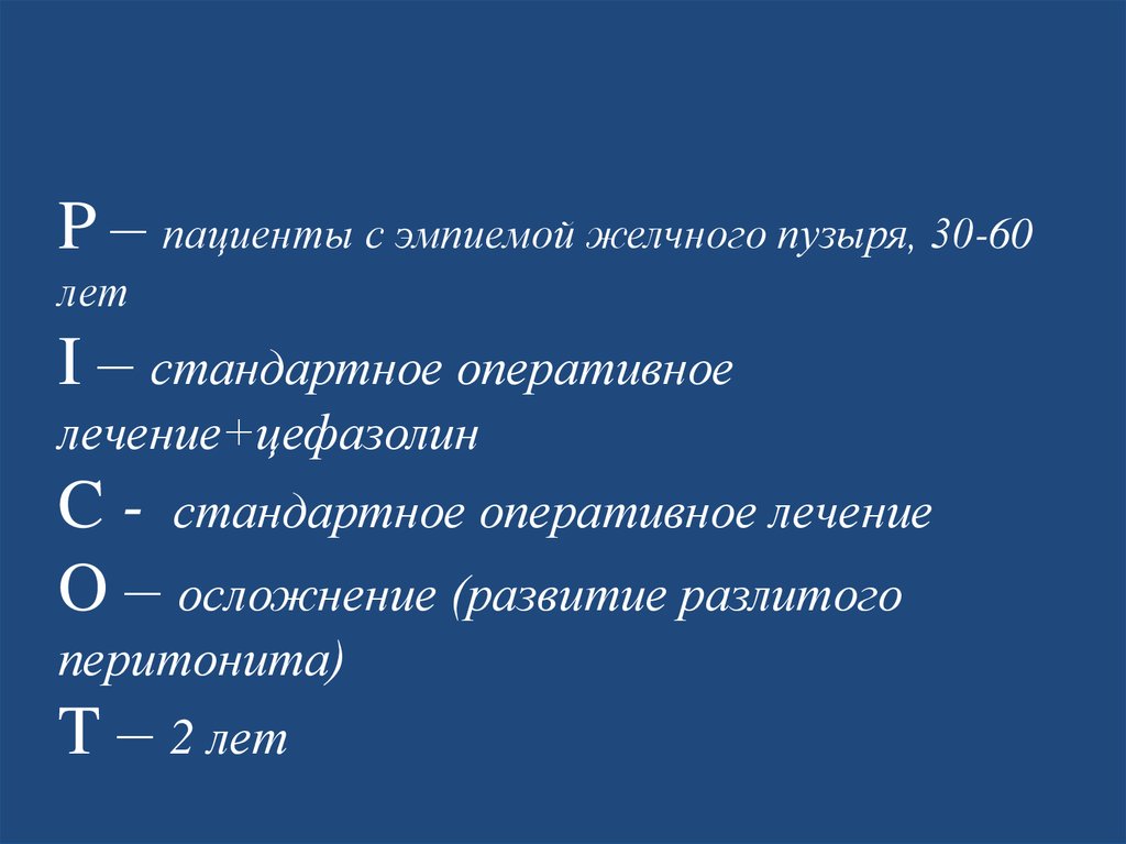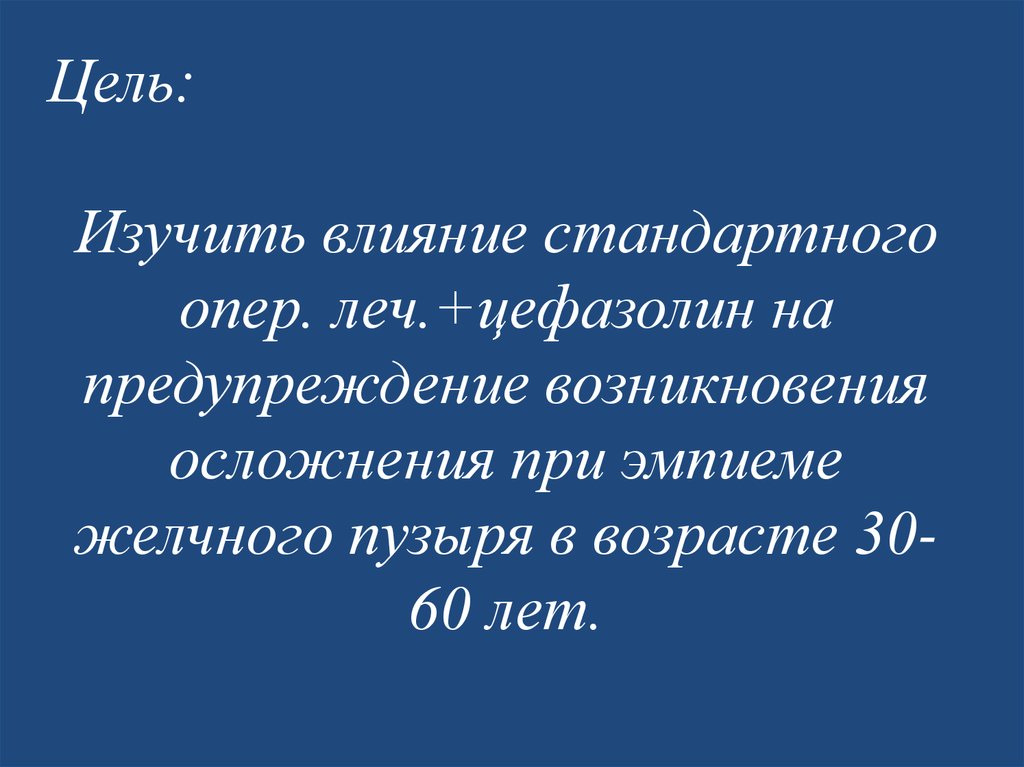 Влияние применения цефазолина со стандартным лечением после операции у пациентов 30-60 лет с эмпиемой желчного пузыря