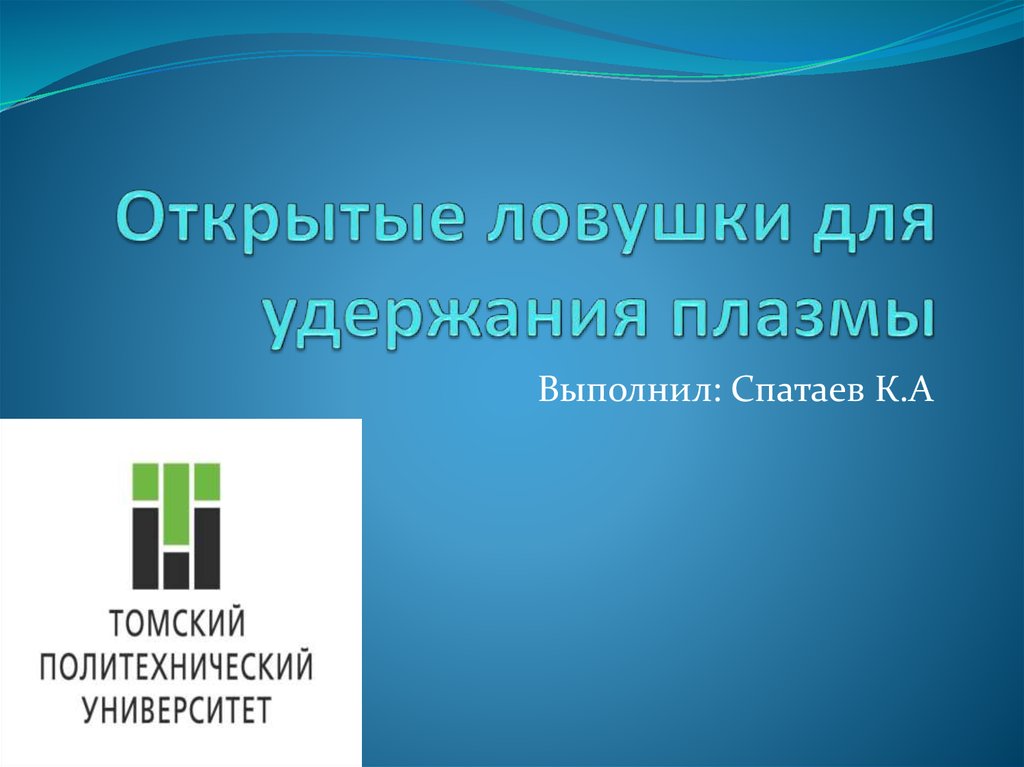 Выполнил: Спатаев К.А2. ОТКРЫТЫЕ ЛОВУШКИ - разновидность Магнитных ловушек для удержания термоядерной плазмы в определённом объёме пространства,