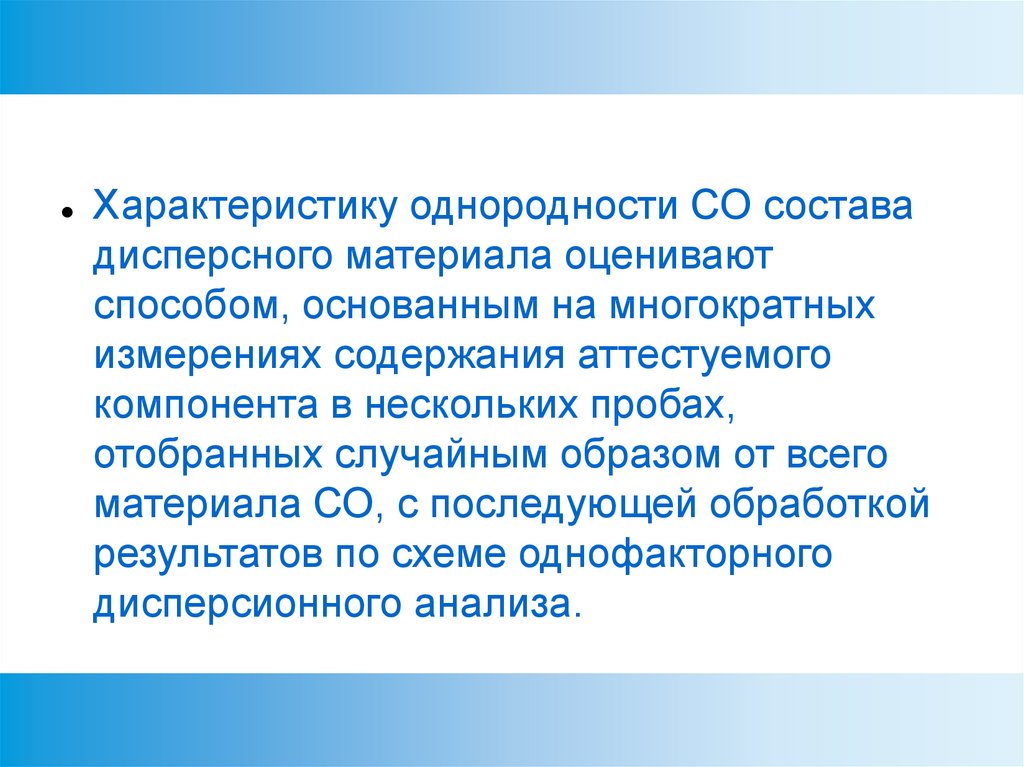 Характеристику однородности СО составамонолитного материала оценивают методом,
