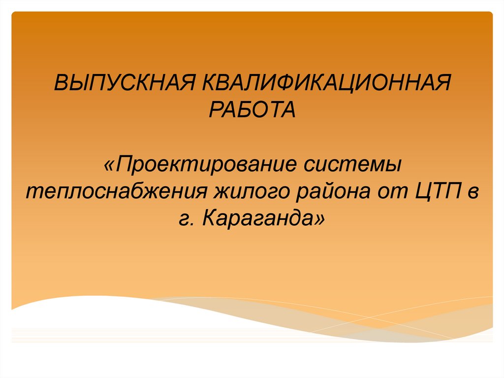 1. ВЫПУСКНАЯ КВАЛИФИКАЦИОННАЯ РАБОТА «Проектирование системы теплоснабжения жилого района от ЦТП в г. Караганда»