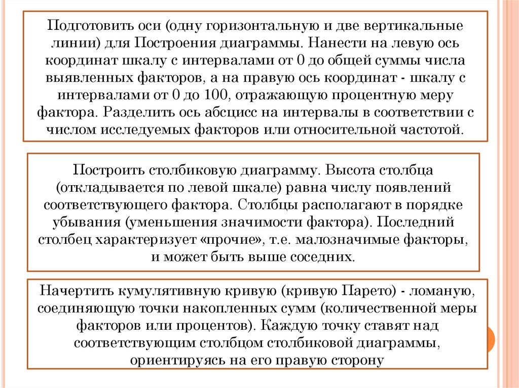 Основные шаги при построении диаграммы ПаретоЧетко сформулировать какие проблемы, вопросы, причины