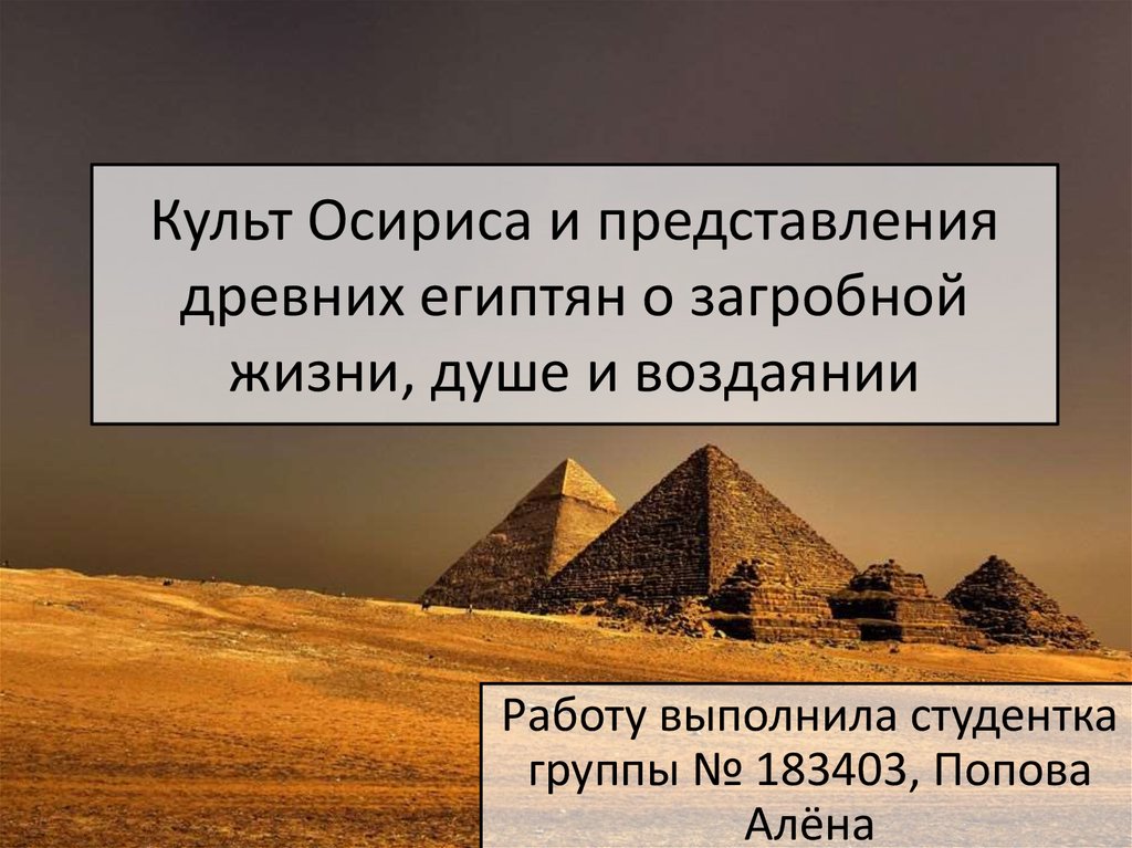1. Культ Осириса и представления древних египтян о загробной жизни, душе и воздаянии