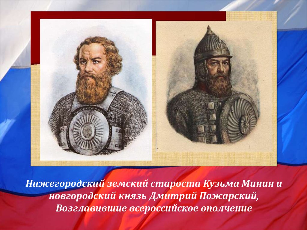 Нижегородский земский староста Кузьма Минин иновгородский князь Дмитрий Пожарский,