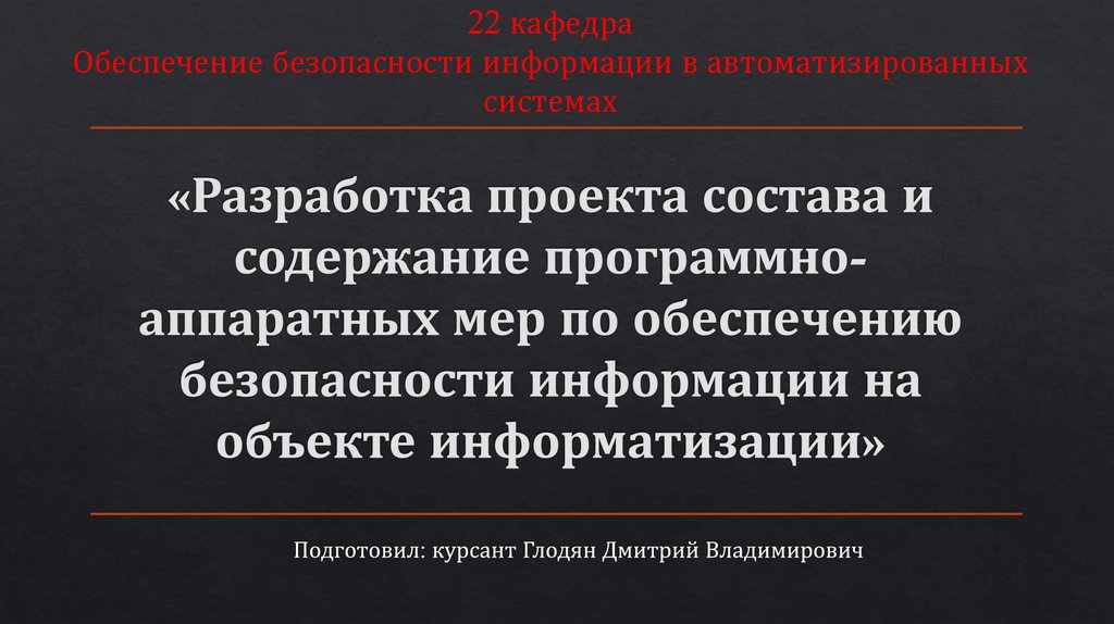 22 кафедраОбеспечение безопасности информации в автоматизированных