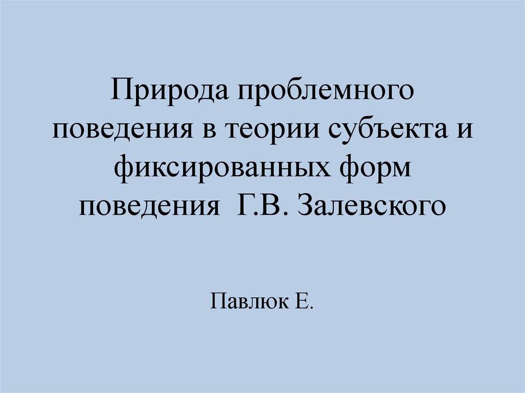 1. Природа проблемного поведения в теории субъекта и фиксированных форм поведения Г.В. Залевского