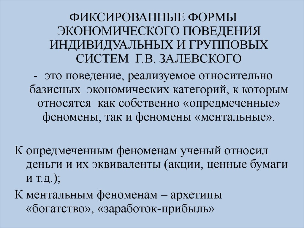 ФИКСИРОВАННЫЕ ФОРМЫЭКОНОМИЧЕСКОГО ПОВЕДЕНИЯ