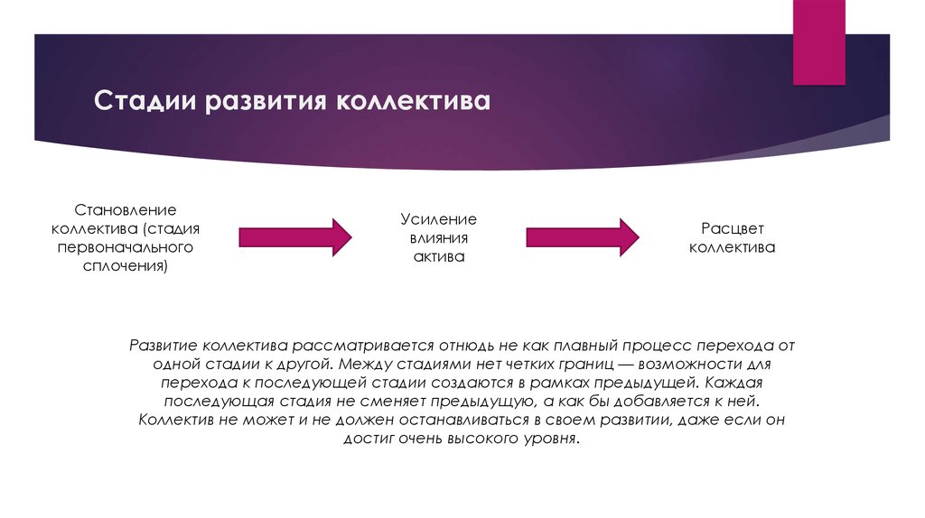 Развитие коллектива рассматривается отнюдь не как плавный процесс перехода от