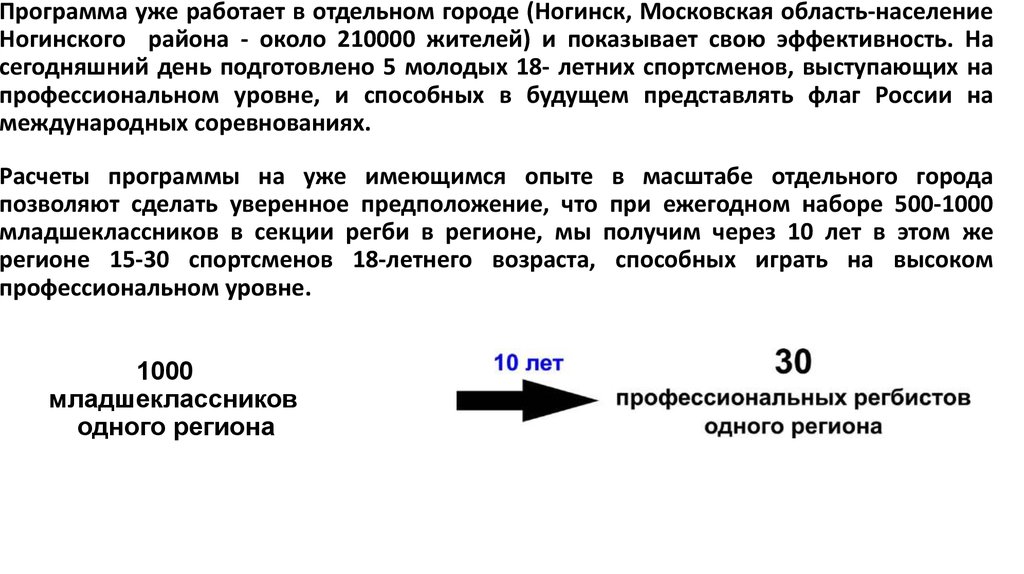 младшеклассников в секции регби в регионе, мы получим через 10 лет в этом же