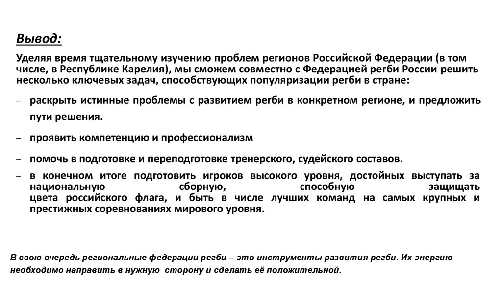 Вывод:Уделяя время тщательному изучению проблем регионов Российской Федерации (в том