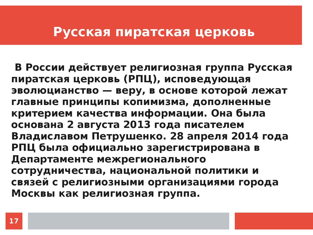 Русская пиратская церковьВ России действует религиозная группа Русская