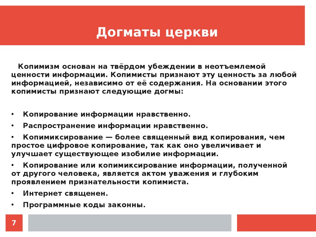 копимисты признают следующие догмы: