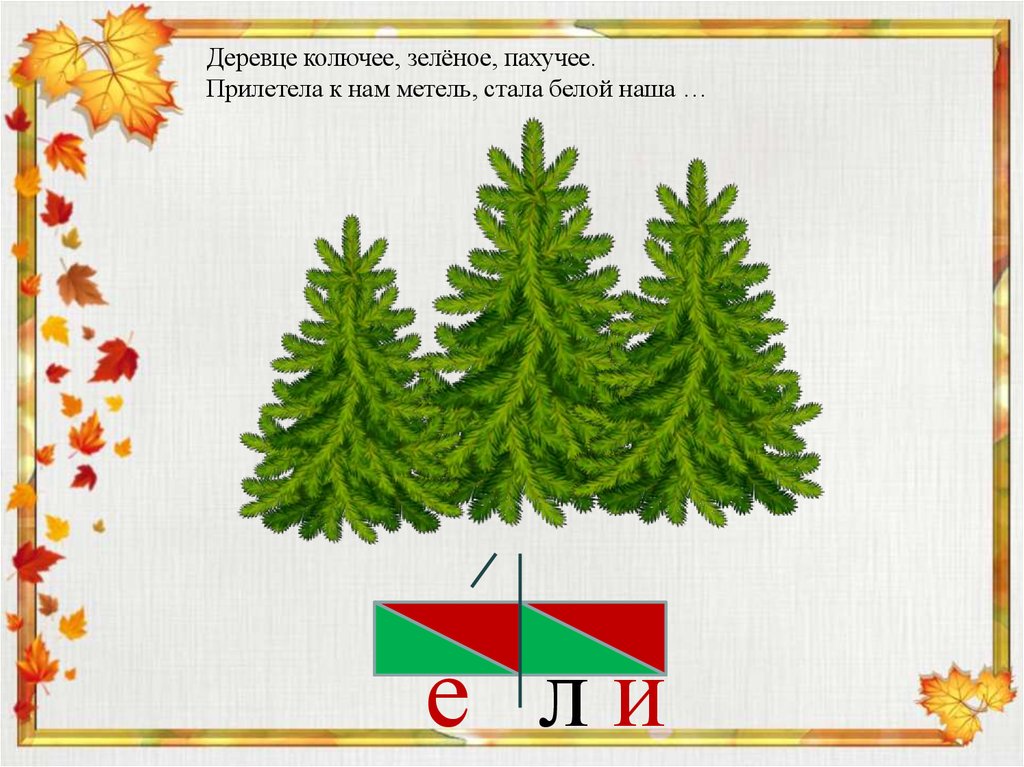 Деревце колючее, зелёное, пахучее.Прилетела к нам метель, стала белой наша …