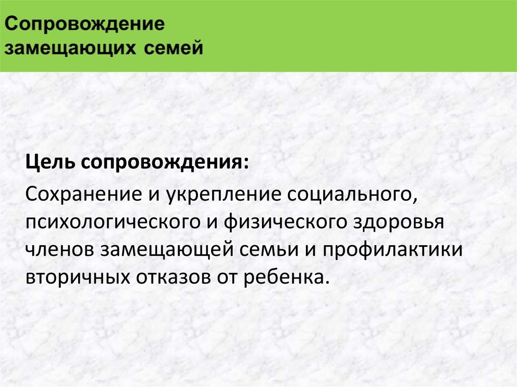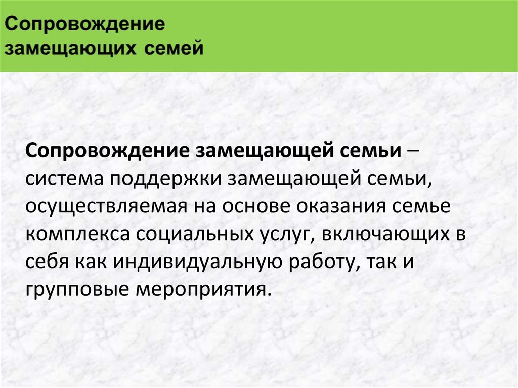 Сопровождение замещающей семьи –система поддержки замещающей семьи,