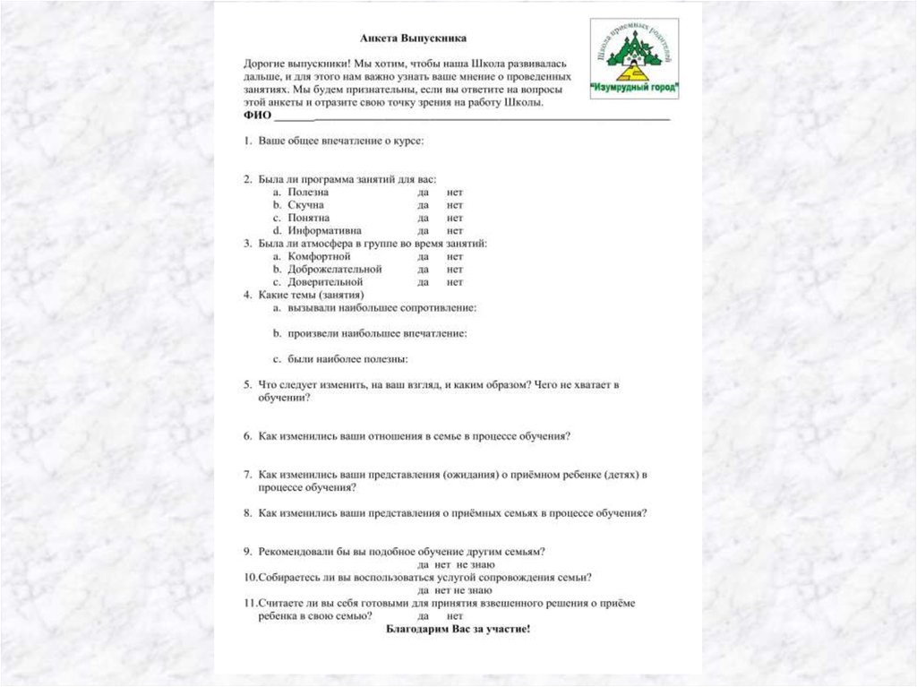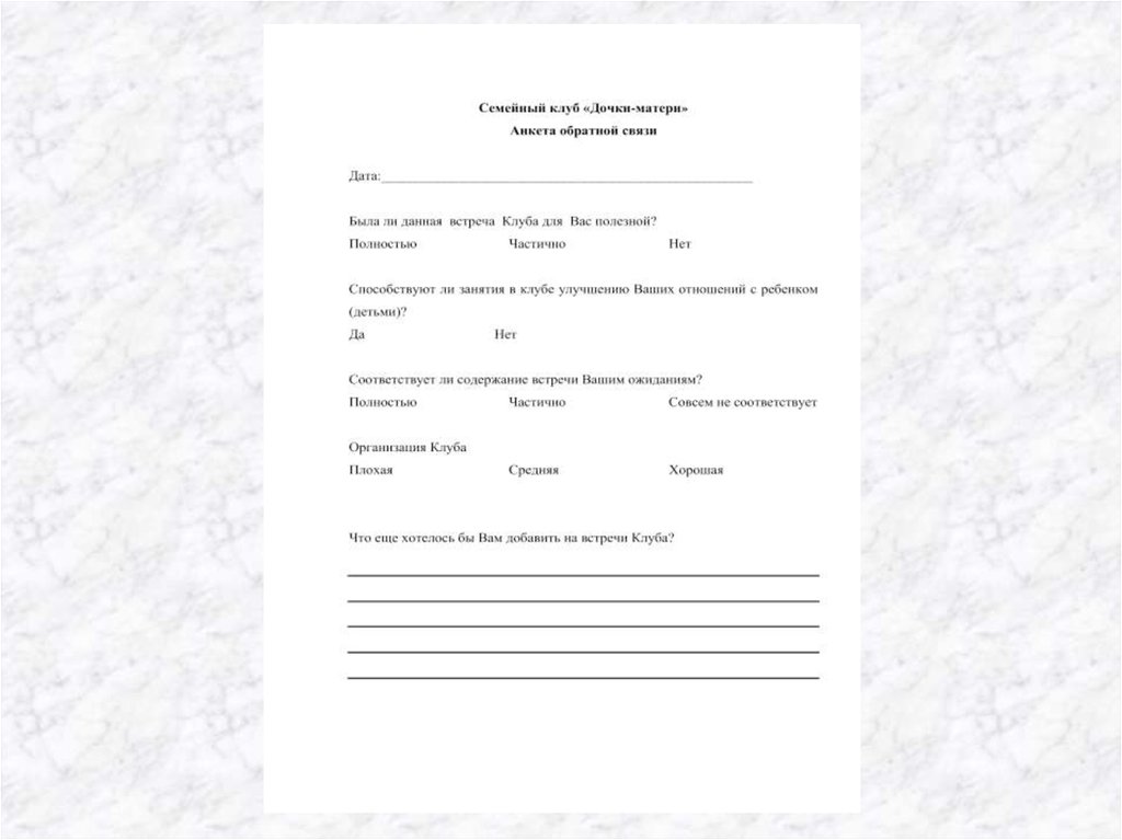 • Анкета обратной связи Семейного клуба