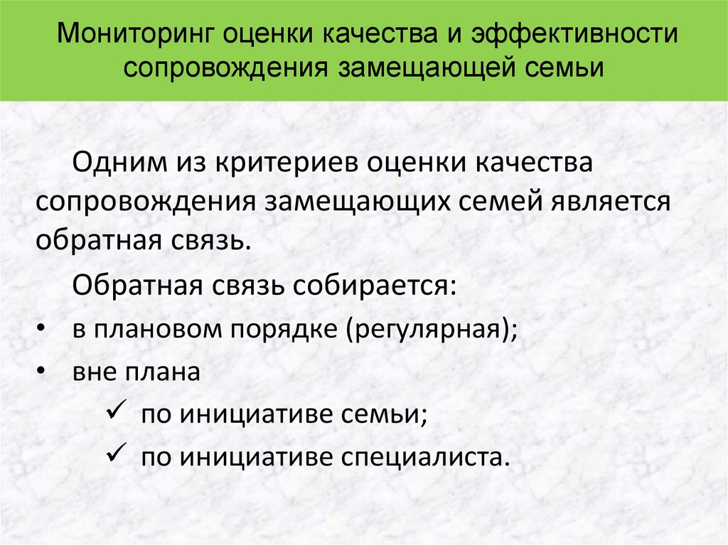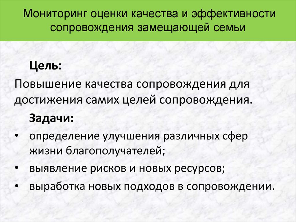 Мониторинг оценки качества и эффективностисопровождения замещающей семьи