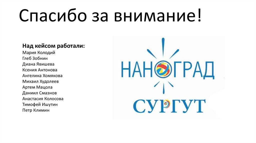 Спасибо за внимание!Над кейсом работали: