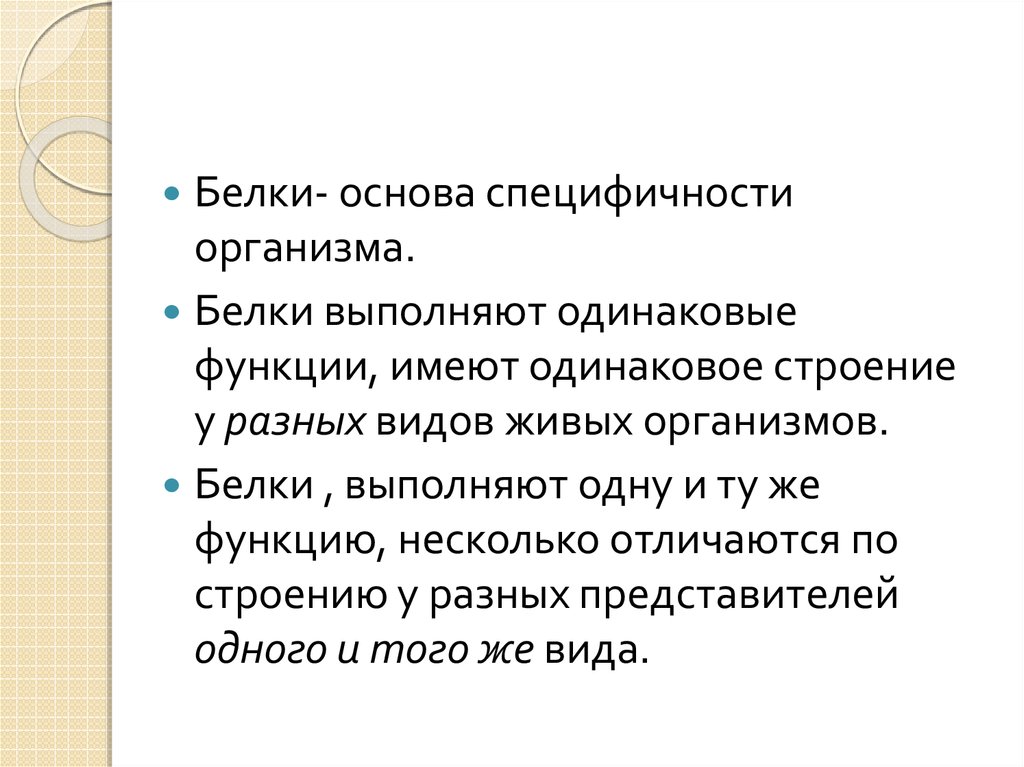 Белки- основа специфичностиорганизма.