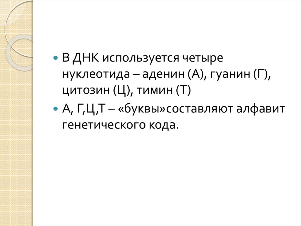 А, Г,Ц,Т – «буквы»составляют алфавит