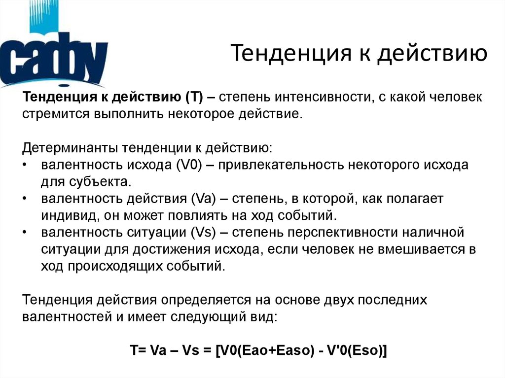Тенденция к действиюТенденция к действию (T) – степень интенсивности, с какой человек