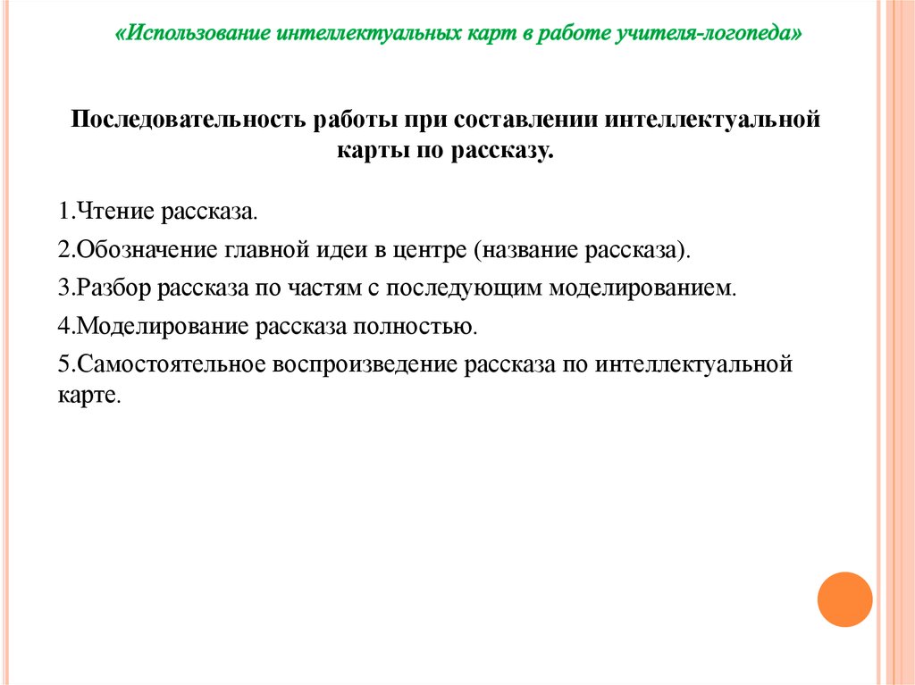 Последовательность работы при составлении интеллектуальнойкарты по рассказу.