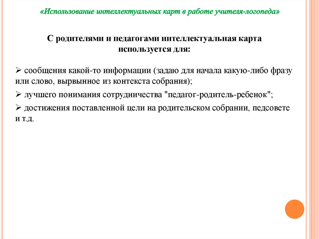 С родителями и педагогами интеллектуальная картаиспользуется для: