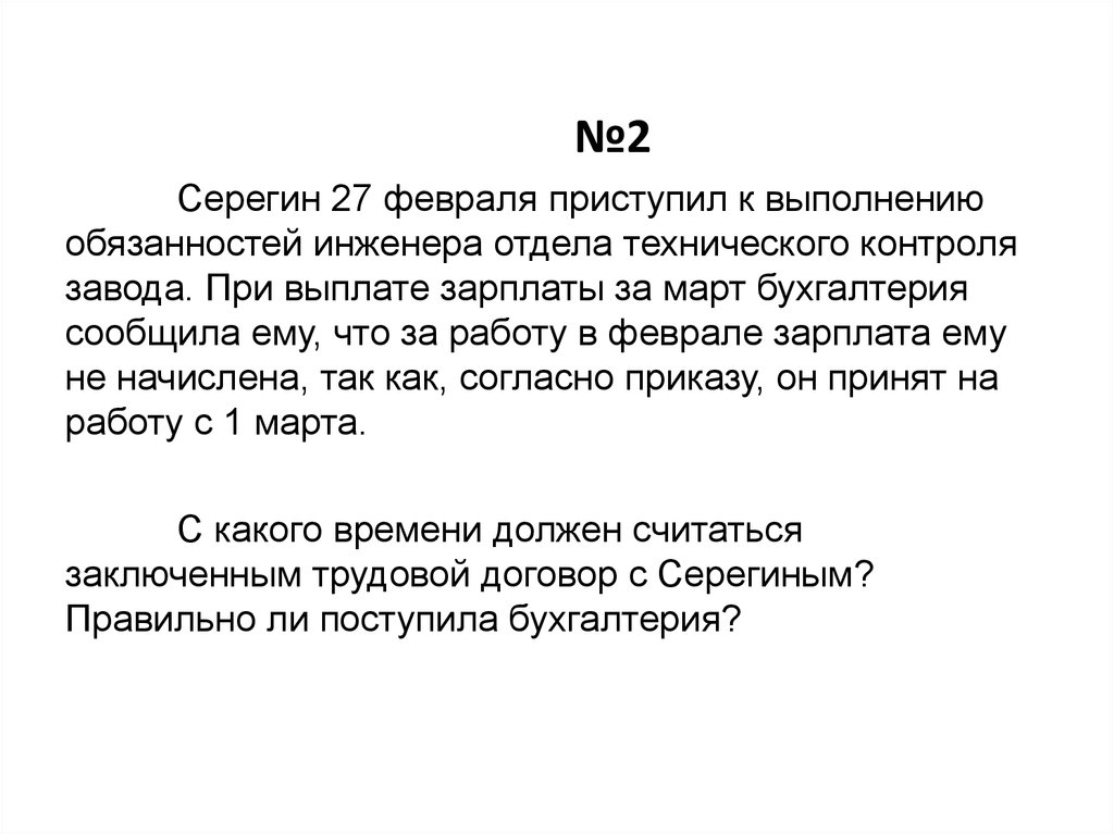 заключенным трудовой договор с Серегиным?