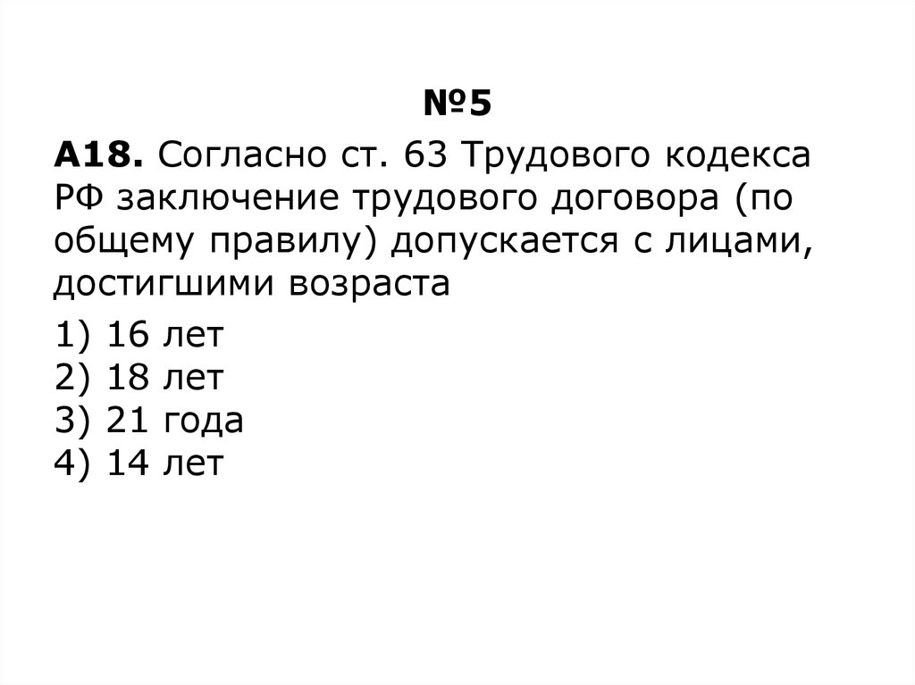 №5А18. Согласно ст. 63 Трудового кодекса