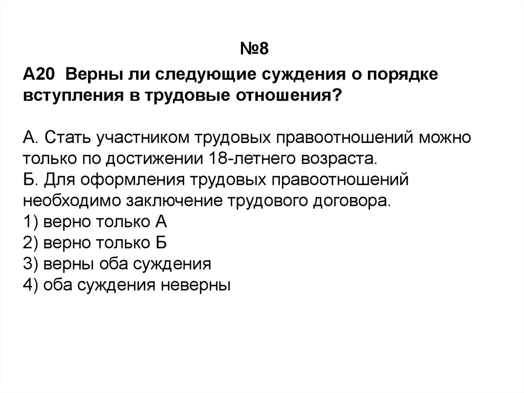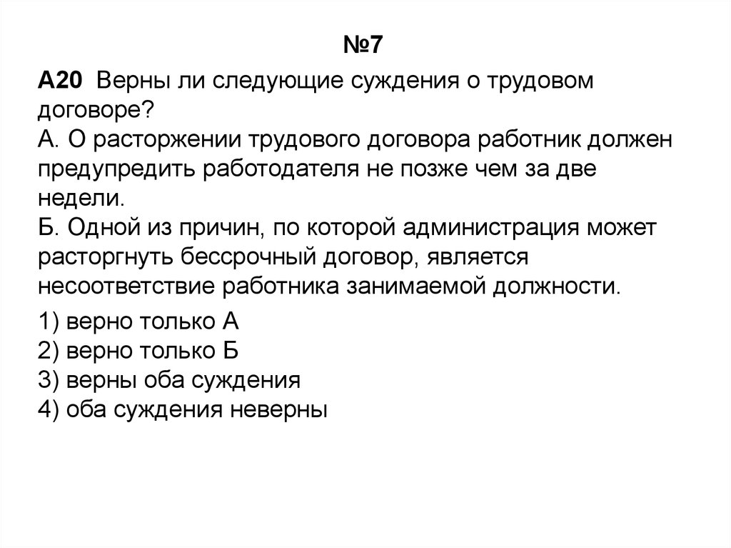 №7A20 Верны ли следующие суждения о трудовом