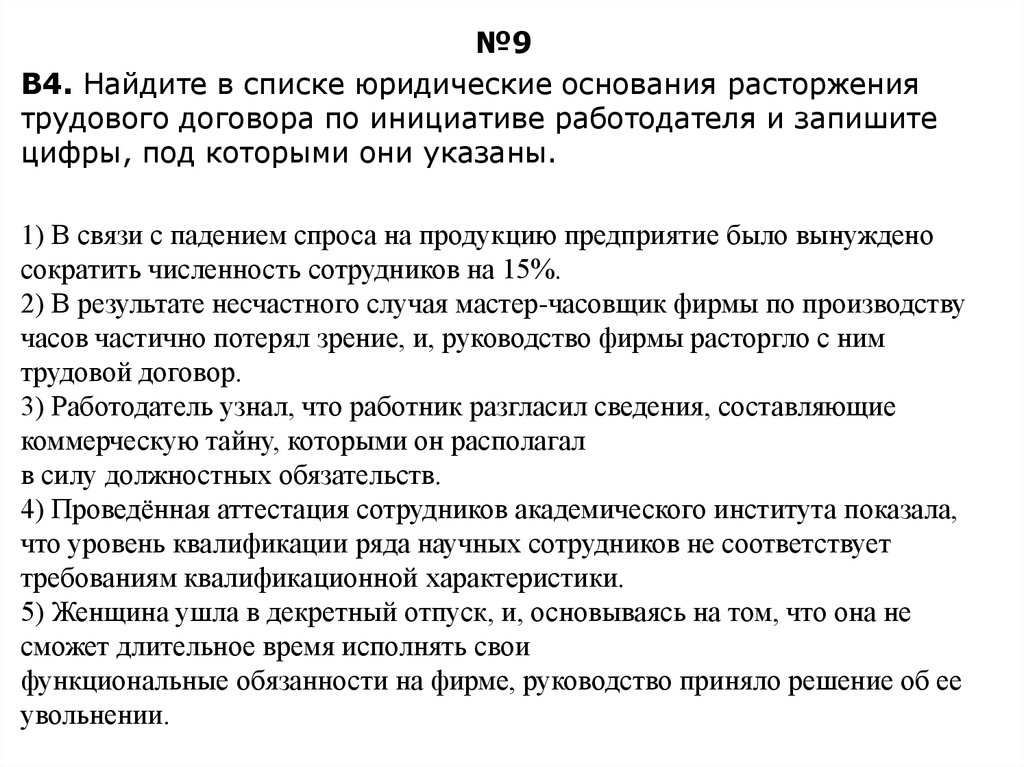 №9B4. Найдите в списке юридические основания расторжения