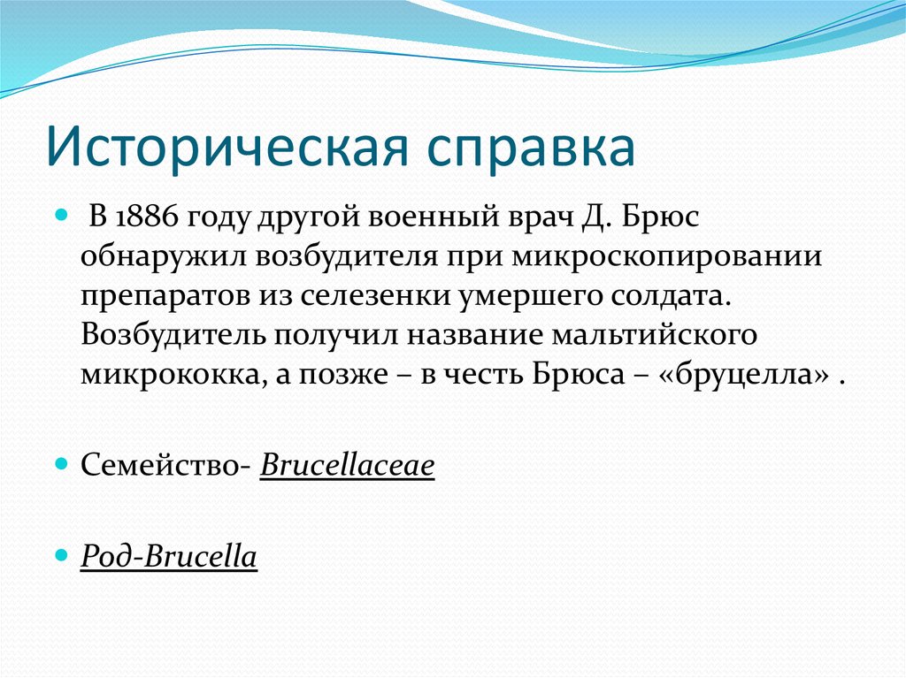 Историческая справкаВ 1886 году другой военный врач Д. Брюс