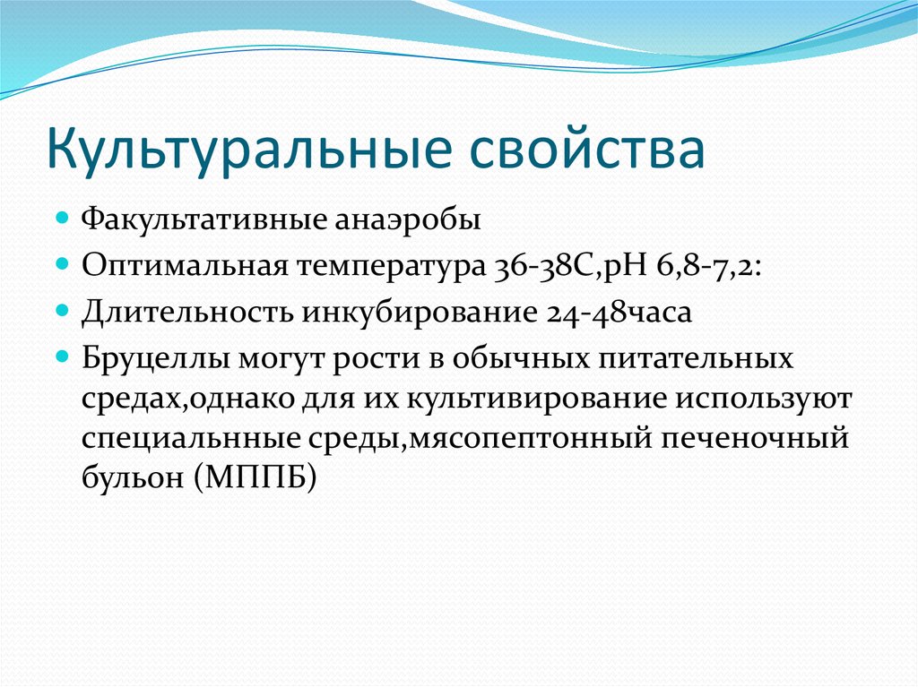 Оптимальная температура 36-38С,рН 6,8-7,2: