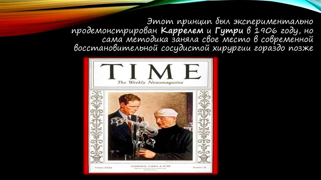 Этот принцип был экспериментальнопродемонстрирован Каррелем и Гутри в 1906 году, но